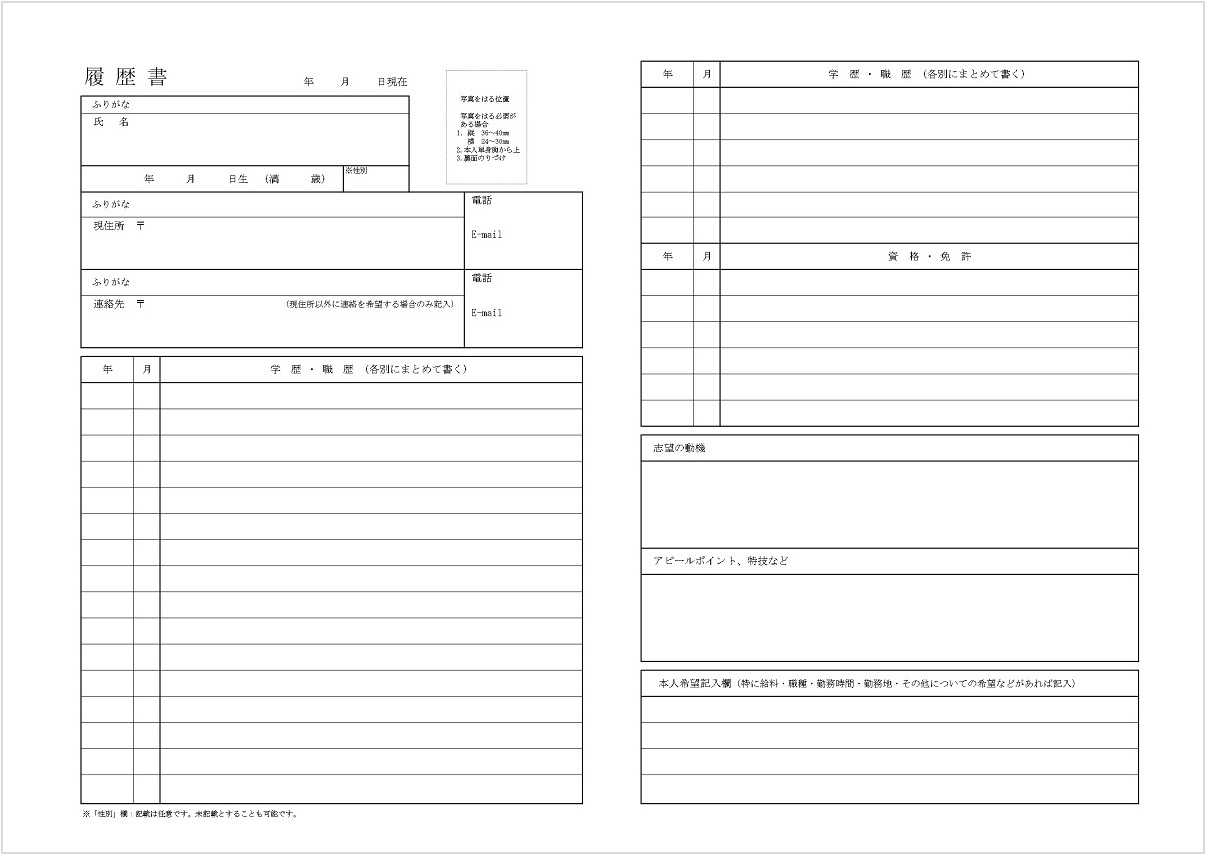 履歴書の写真は、手書きでもパソコン作成でも原則必須です。